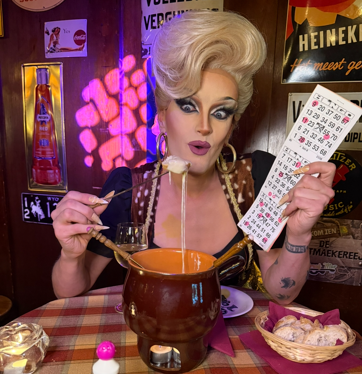 Gasten die een fondue-arrangement nemen krijgen één bingoronde gratis. Extra rondes zijn verkrijgbaar voor €7,50 per bingokaart per persoon. Dranken zijn niet inbegrepen.